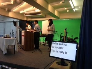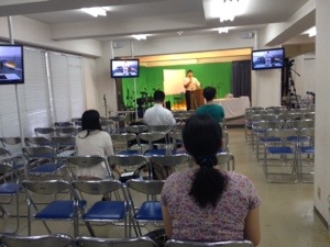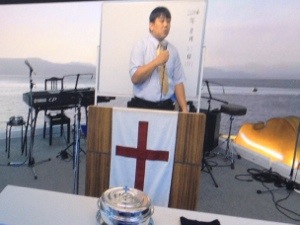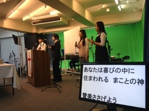 礼拝スタート! 賛美リーダーは苫米地チーム。