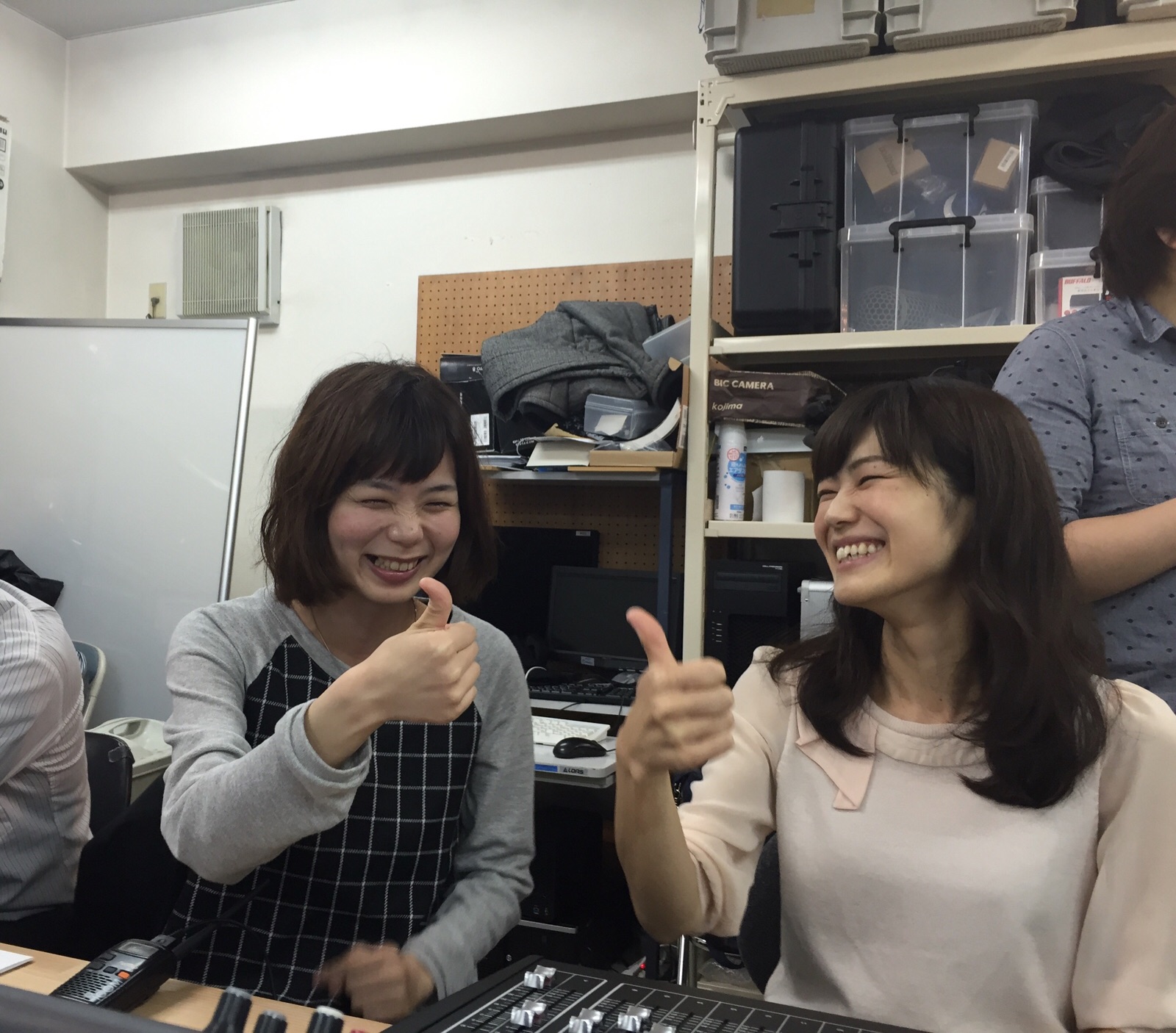 この二人も、作詞作曲者!写真は、りょうこちゃんの親指がいかに曲がるかという話しで笑顔の二人(笑)shoko