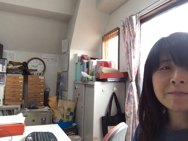 教会事務所には私と加藤さんと、それから姿形は見えないのですが、向こうに真境名さんがいらっしゃいます! Kayano