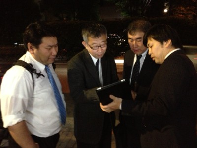 会堂外です。明日は釧路でご奉仕の秋元牧師と、釧路から来られた森牧師。