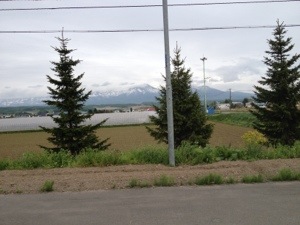後ろに見えるのは、十勝連山です。夏山登山の到来です。