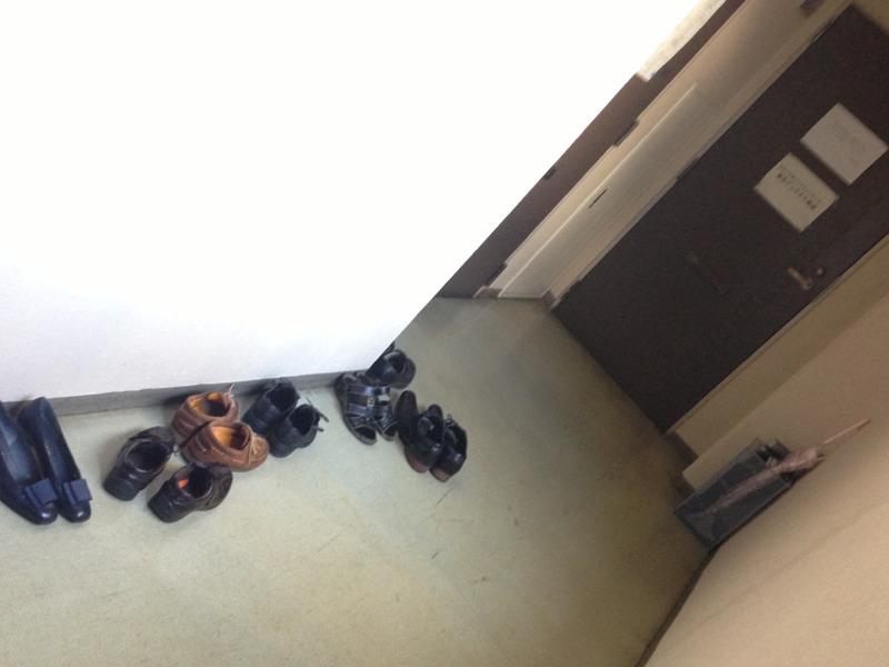 パウロ秋元牧師は、日曜日の預言セミナー授業の講師をされています。この靴の行列は生徒さんのものです!