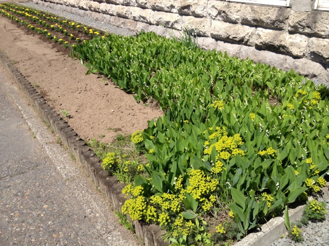 駅前のシンボルとなる木です。根元にも可愛い花が咲いています。