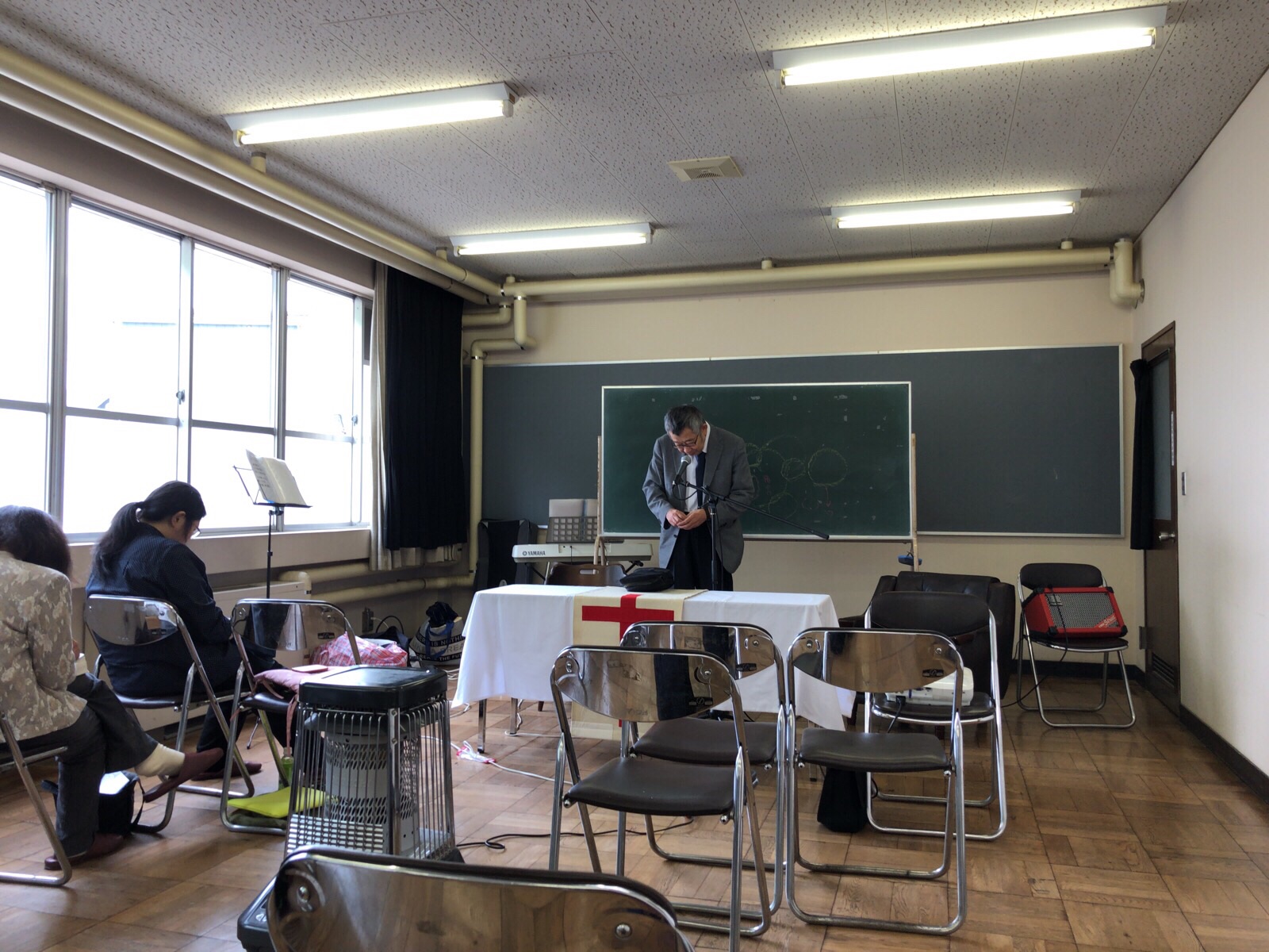 預言セミナーが始まります。 司会の谷口さんがお祈りしています。