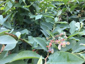 ブルーベリーの木に小さな実が付き始めています