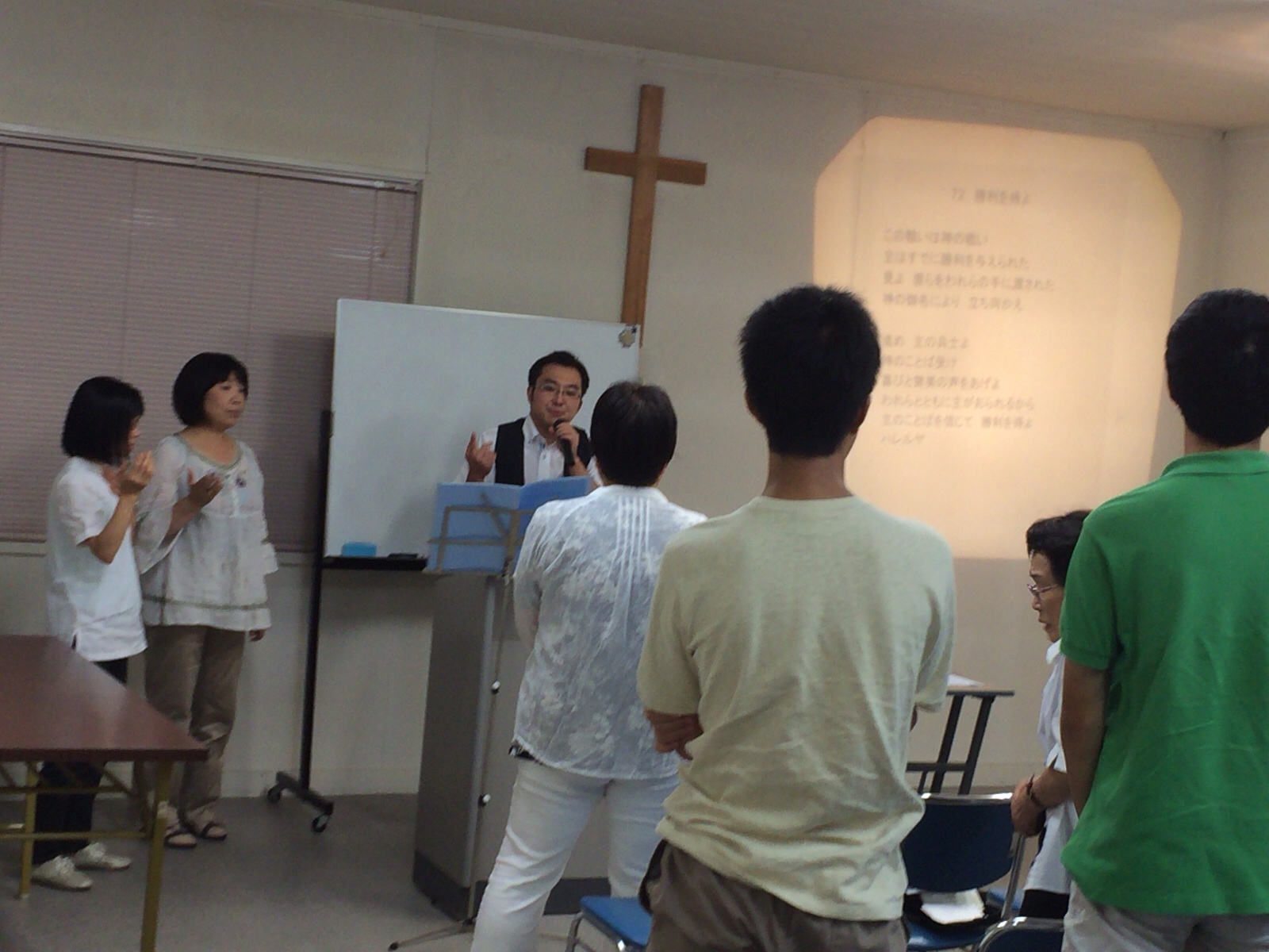 六日町、十日町合同カリスマ聖会が始まります。 六日町教会の常山牧師のお祈りでスタート。