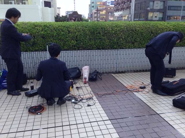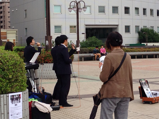 これから船橋キリスト教会でのコンサートに備えます。 それにしても、この路上のために晴れてくれたような、不思議な天気です。新たなファンもできました。