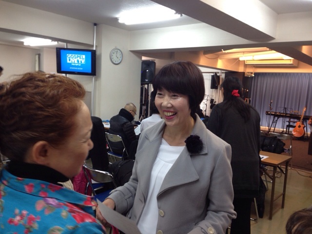 エルサレムの真理子さんと談笑するラ・スポーザの榊牧師。髪を切られて、ますます素敵な笑顔です。 東京アンテオケ教会