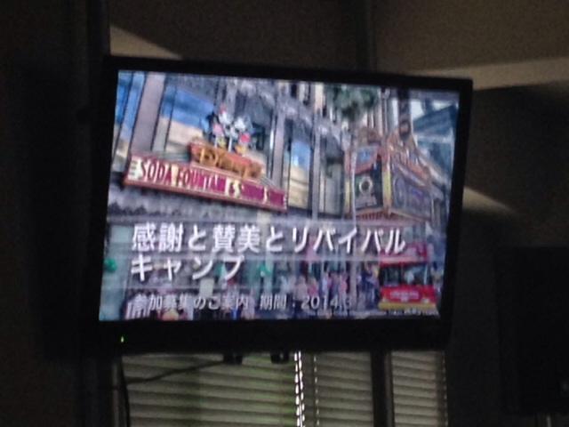 感謝と賛美とリバイバルキャンプの紹介映像が流れています。 東京アンテオケ教会