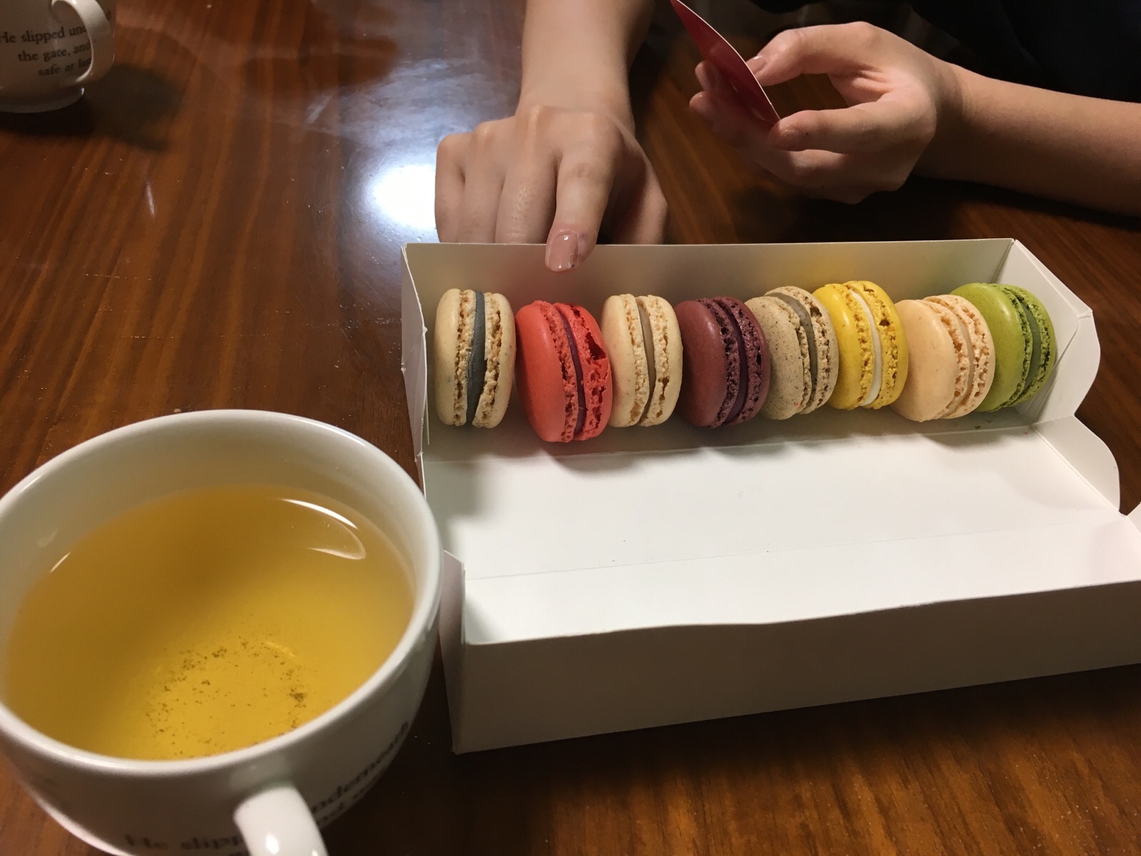 今日は30年めの結婚記念日でした。子供たちがお祝いにマカロンを買ってくれました。自分たちも食べたかったみたいです。 テモテ