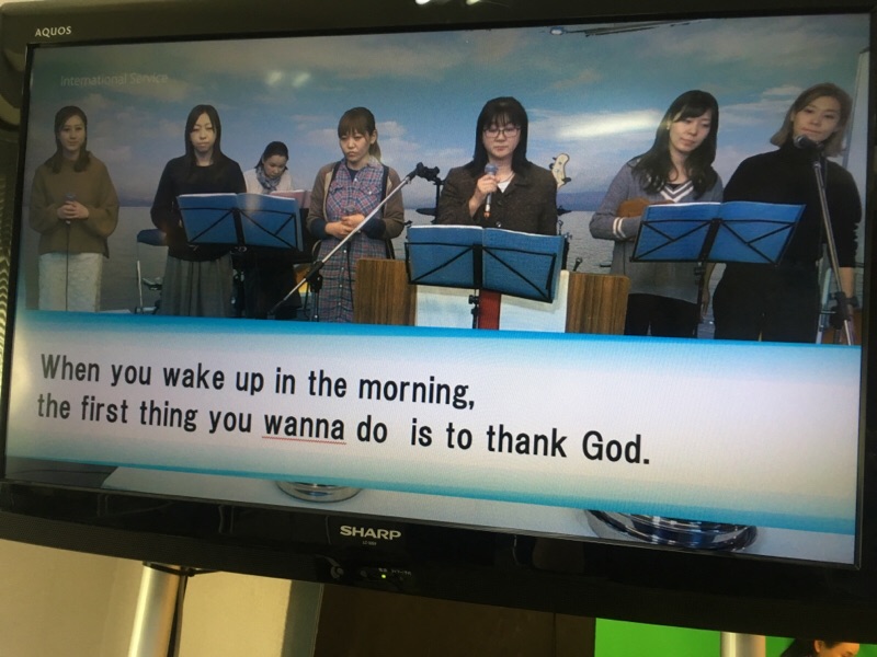 今日は、インターナショナル礼拝では初めての5集35番「聖なる主」も賛美!
