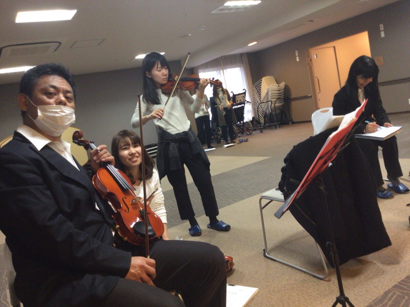 稲川さん、みきちゃん、るっちゃん、私と昨日のオーケストラはバイオリン四重奏でした。masukawa