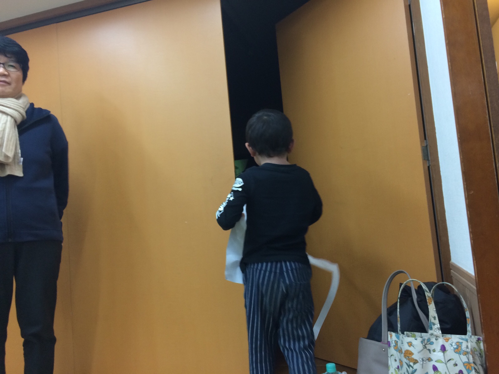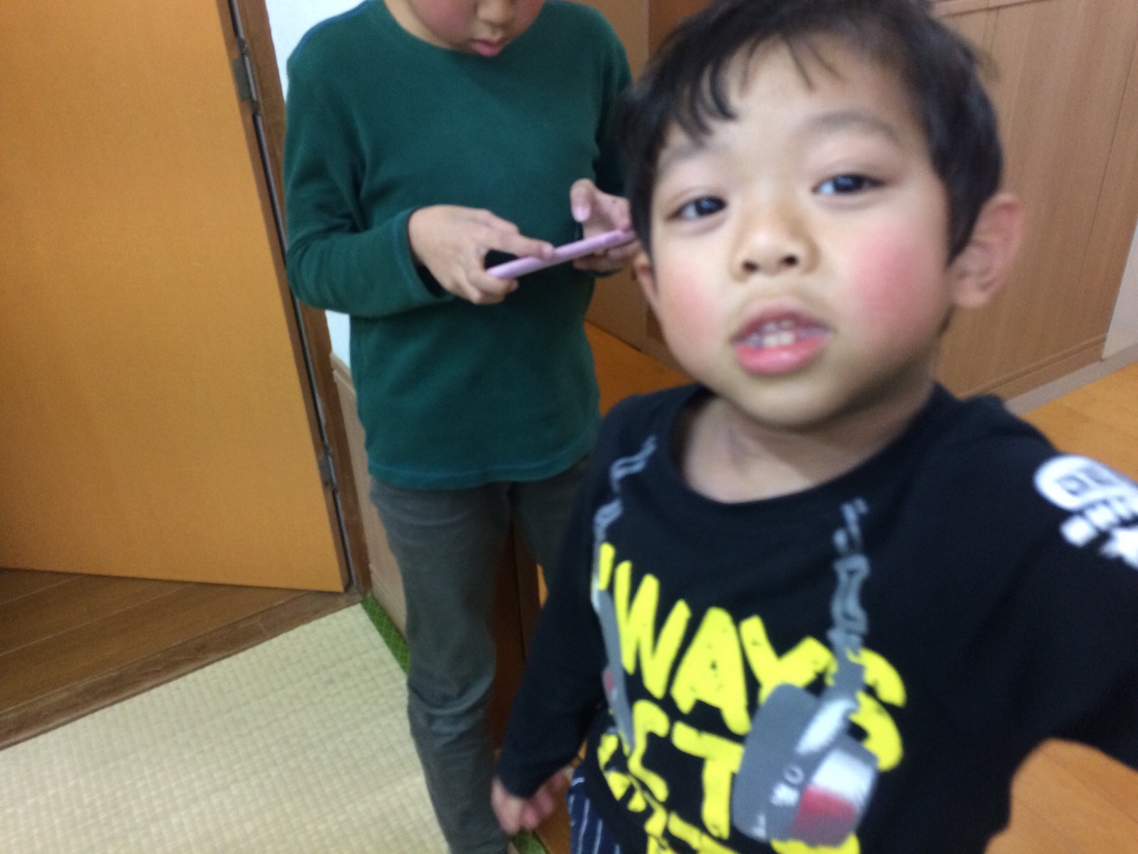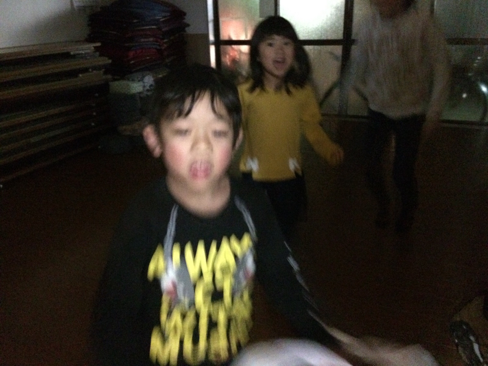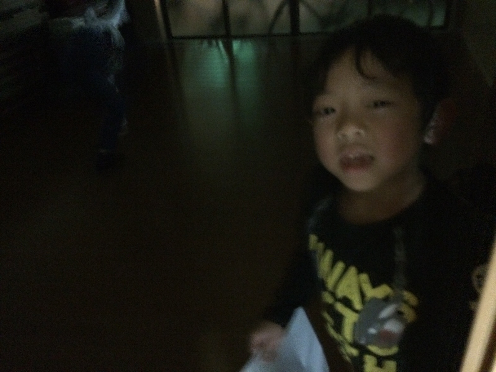 「お化け屋敷に入るよ。」と言いに来て、ドアの向こうに行きました。 ミカエル