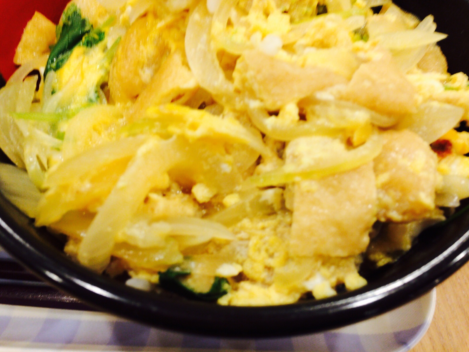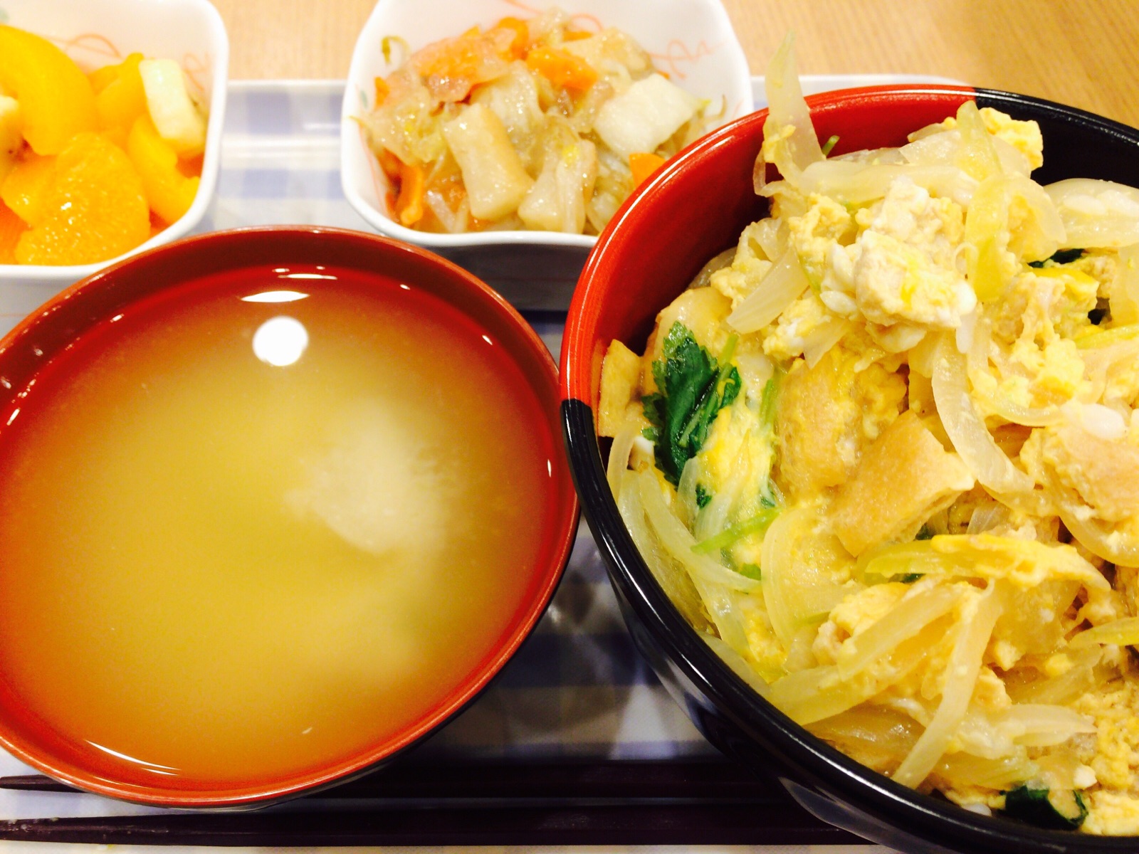 これは親子丼では、ありません。 衣笠丼(きぬがさどん)です。鶏肉じゃなくって、油揚げが入ってます。 ミカエル