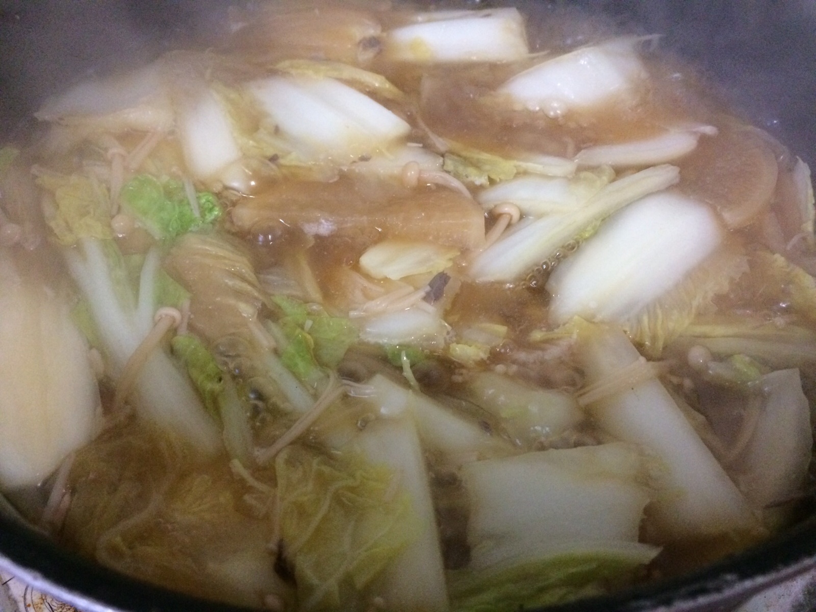 昨夜の残りです。野菜食べたら、蕎麦入れて食べます。