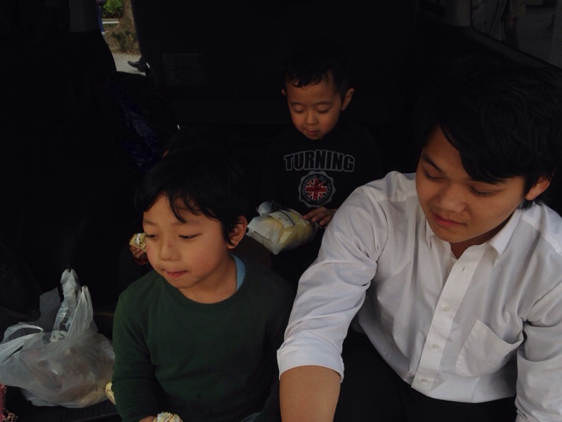 到着して早速ご飯食べてます。前田兄弟達!サムがお父さんみたいですな C&W makoto