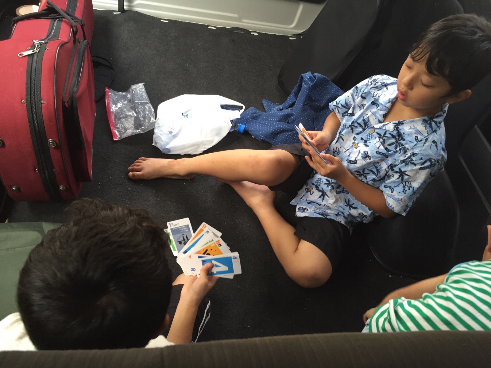 車の中でトランプの大富豪してます♪