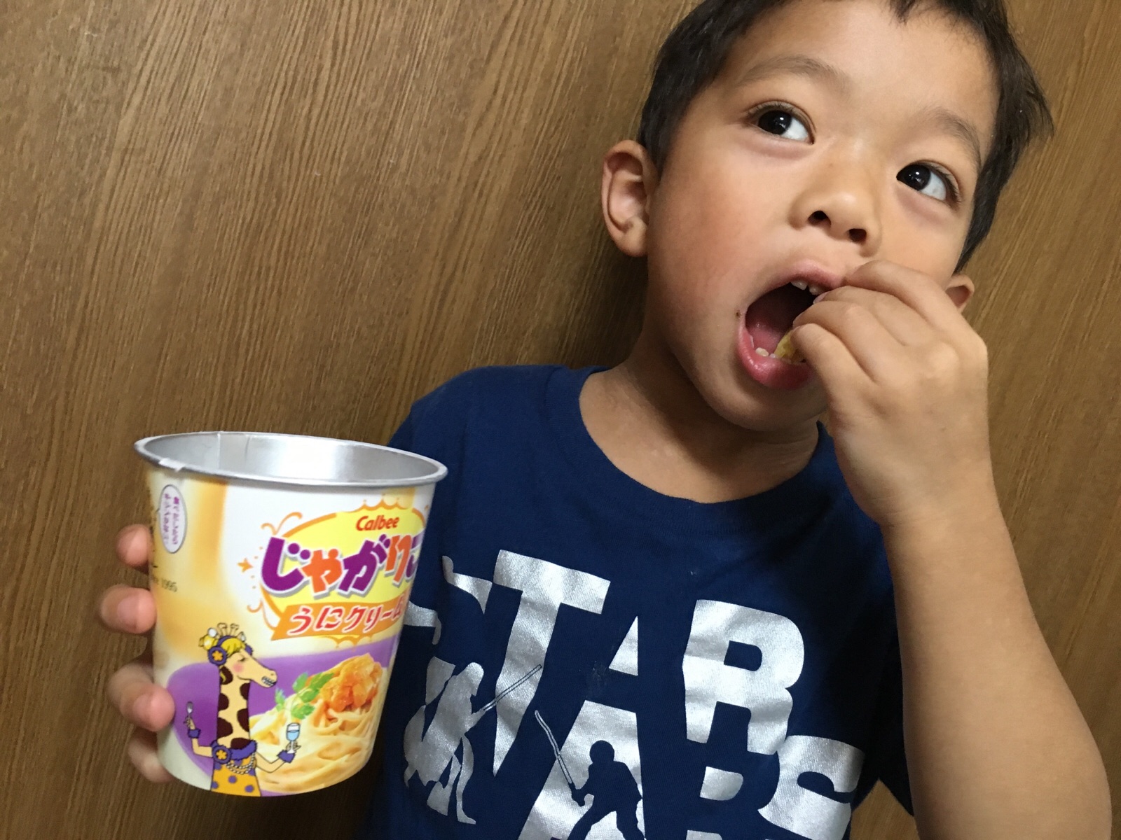今日のおやつは、じゃがりこ・うにクリーム味☆ 子供キブツ Samuel&David