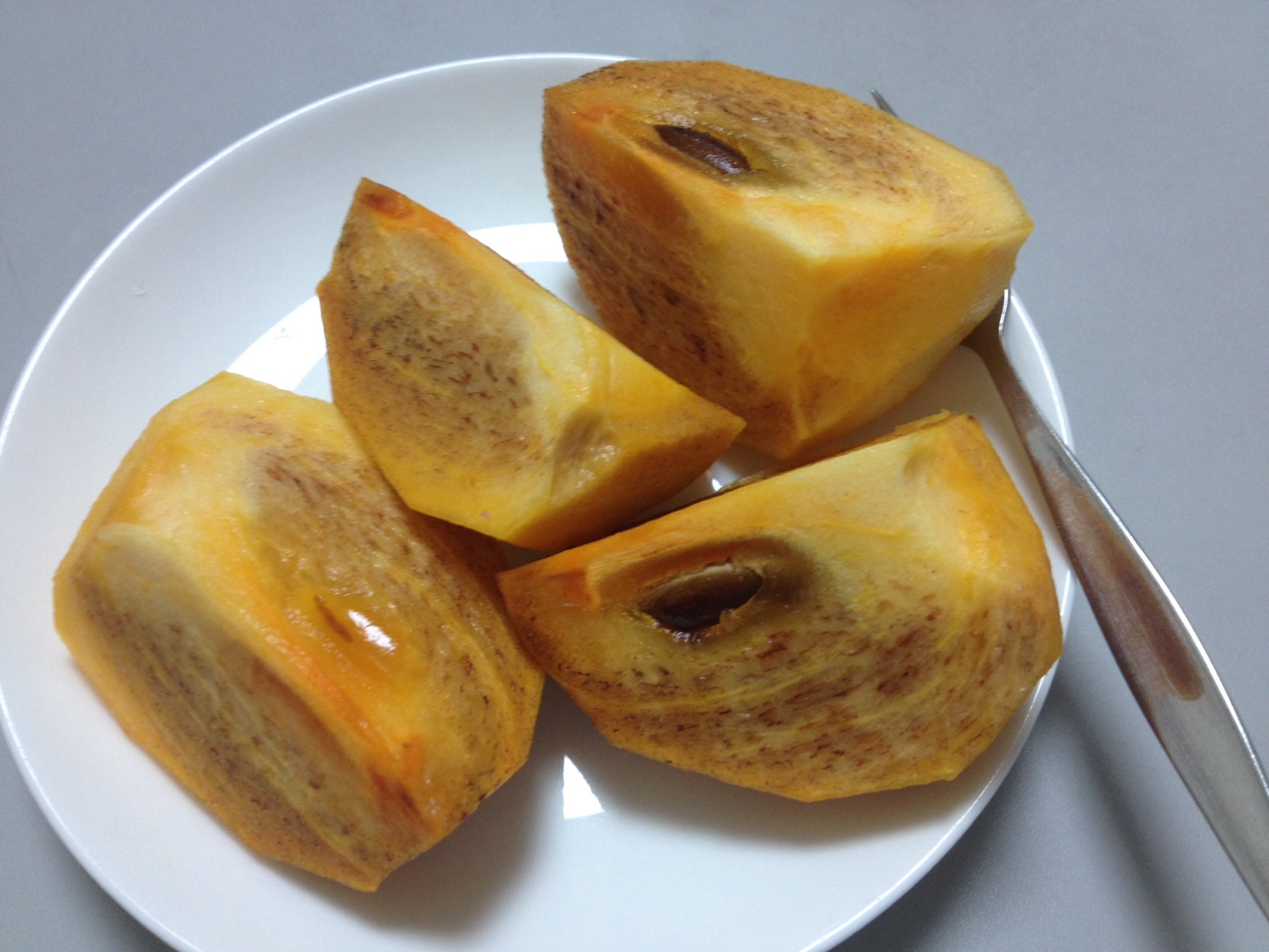先月のことになりますが、実家の庭の柿です。 見た目はともかく甘くて美味しい! kato