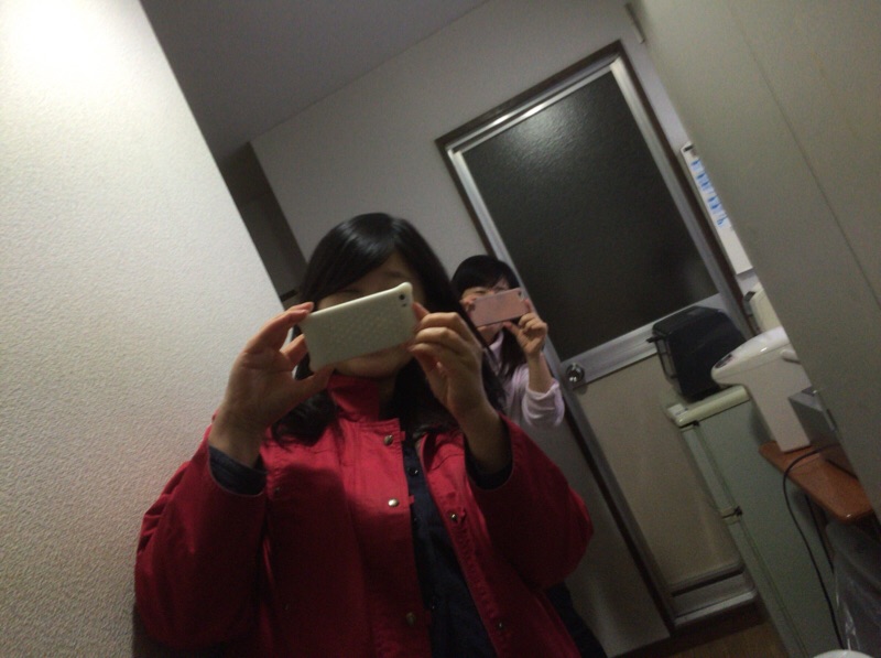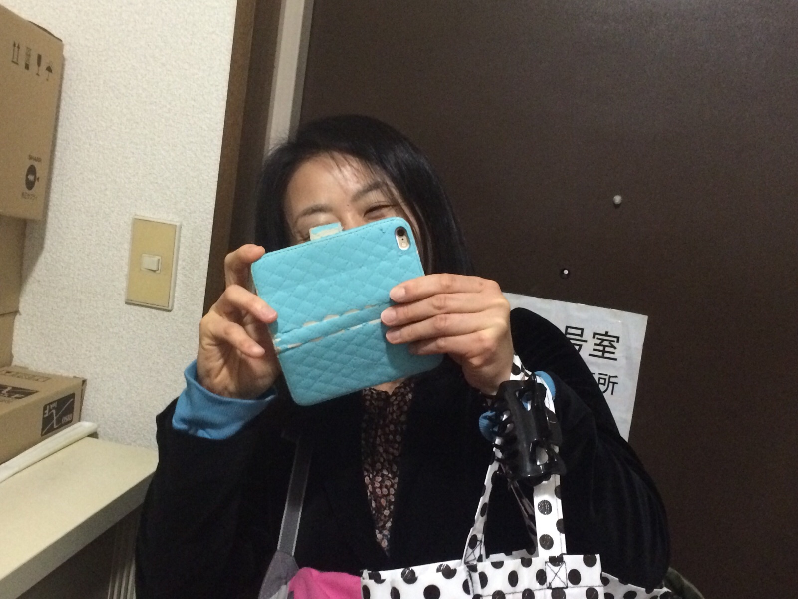 ふたりで撮り合いに… 綺麗な水色のiPhoneカバーですな!amagai