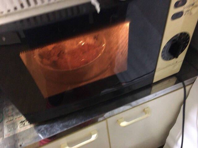早めにお昼です。 今、レンジで温めてます。 Kayano