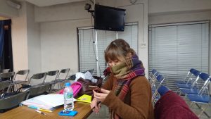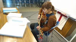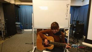 会堂では、由美ちゃんがギターの練習をしていました。 もうすぐ始まります!
