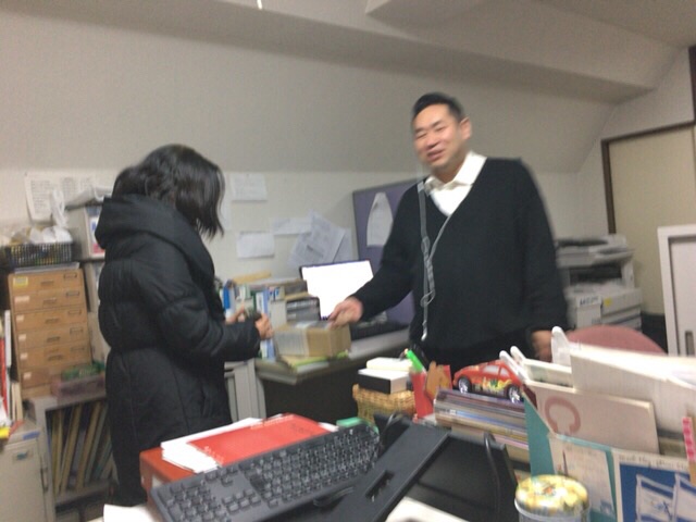 加藤さんコートを着てお仕事。(^_^) Kayano