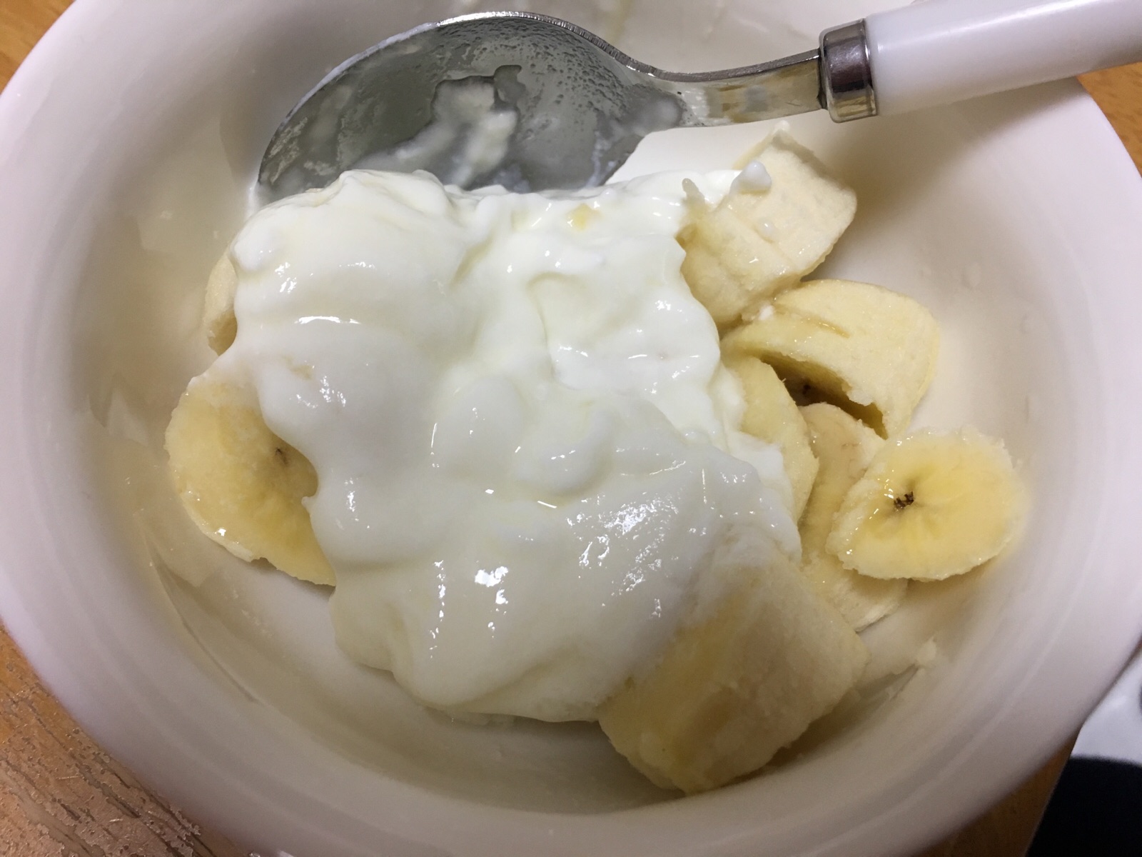 おはようございます! 朝はバナナヨーグルト一品です。 Kayano