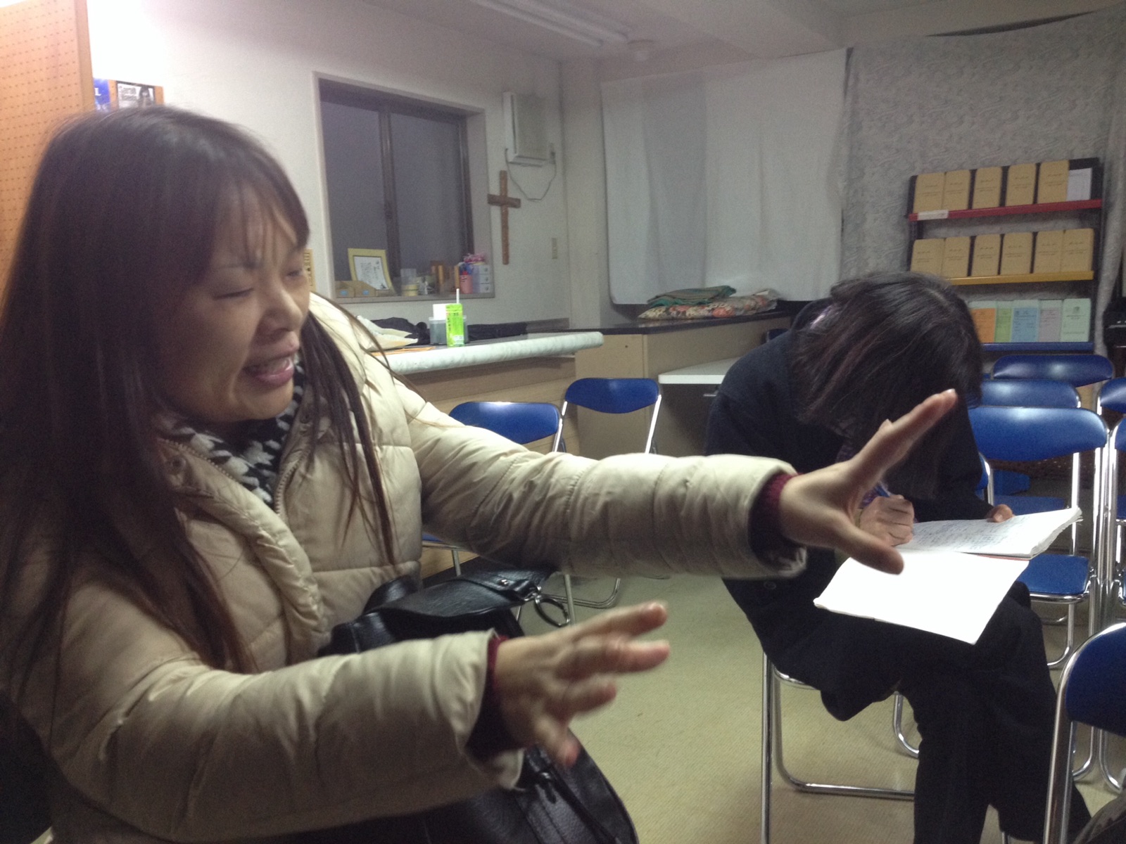 早天の後に証しタイム! キリスト教の幼稚園だったというお客さんに福音を語って、イエス様を信じるお祈りをしました! とても喜んでいたそうです。 kato