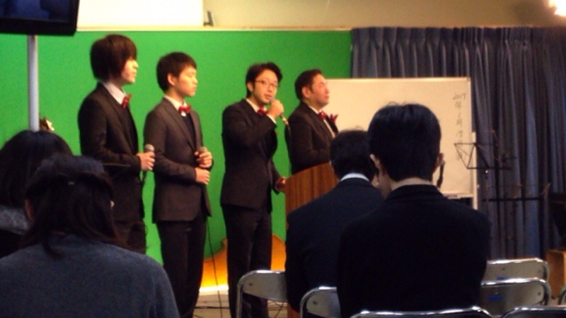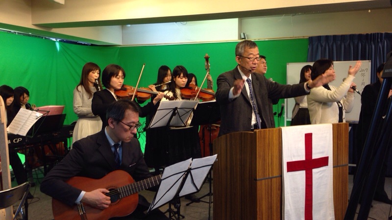 前半賛美。賛美リーダーは、ヨセフ三本松さん。