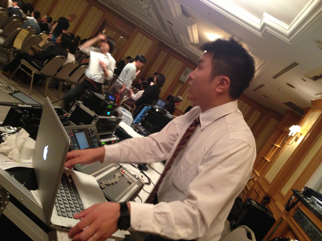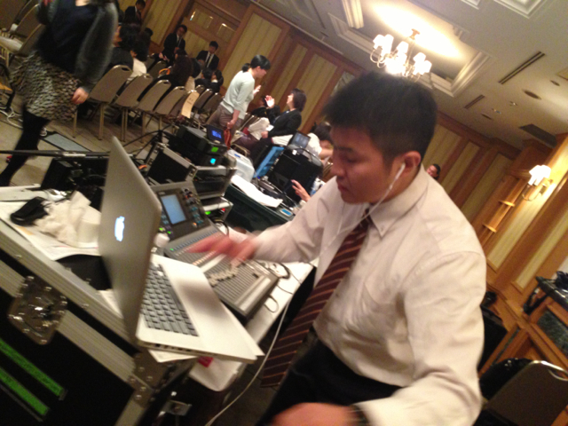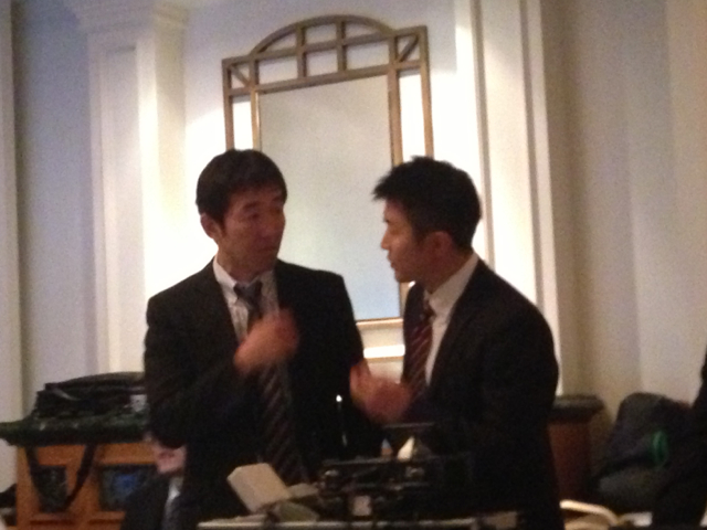 日本語の声の吹き替えをされた佐藤伝道師はモーセ出西牧師と打ち合わせ中です。