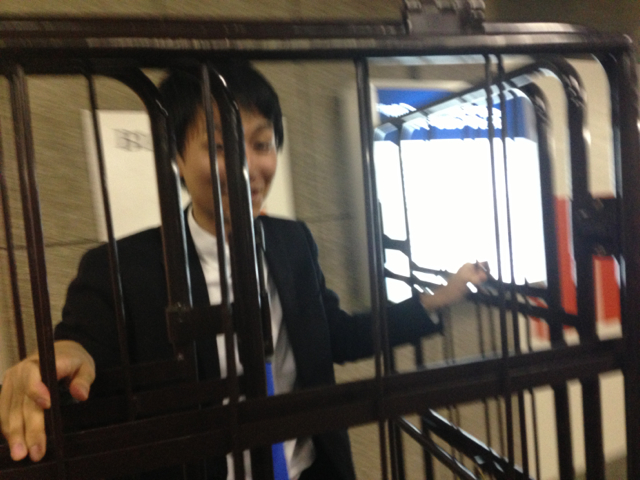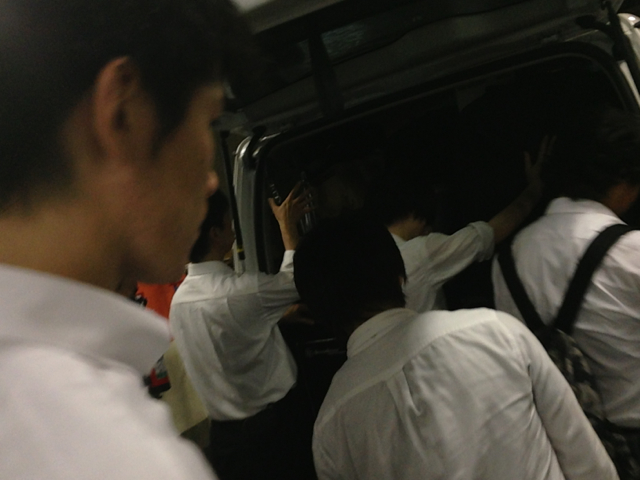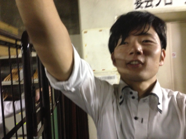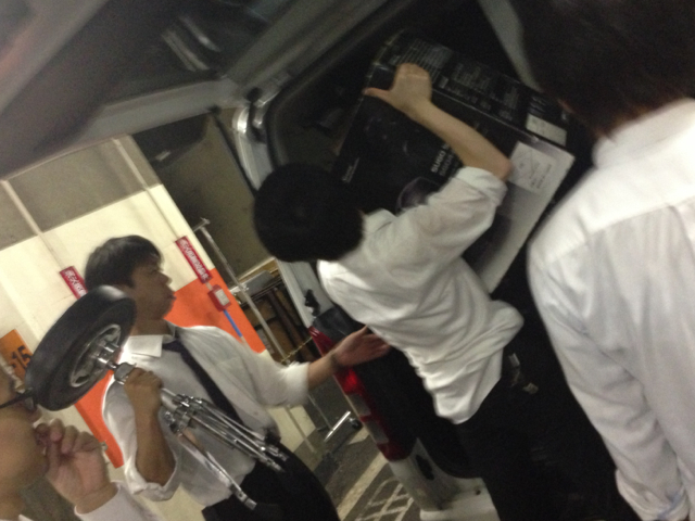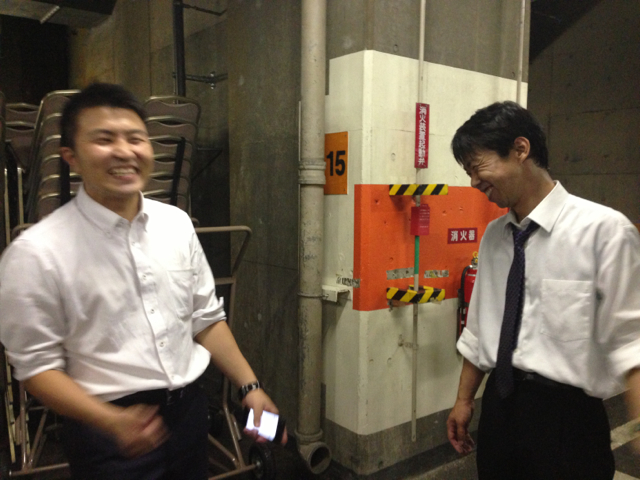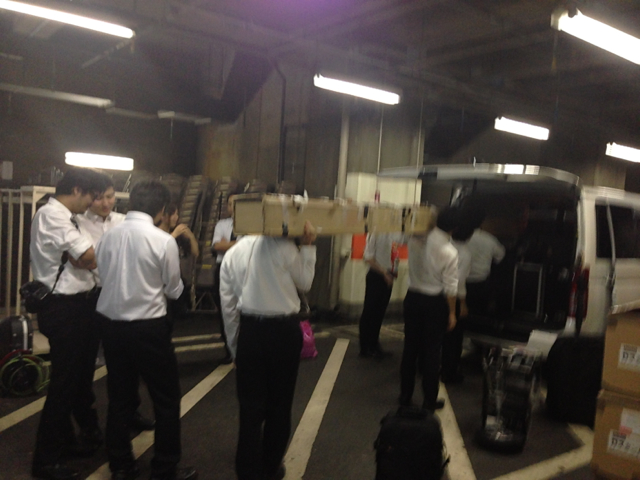 長いスクリーンを運ぶ途中、オッとと!うわあ〜と皆さん一斉に焦っていました。