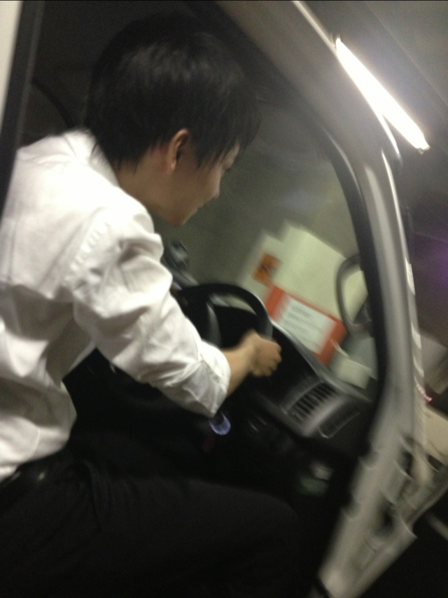 車から降りようとしたところ、ブロガーにサービス。運転しているポーズしてくれました伊藤さん!