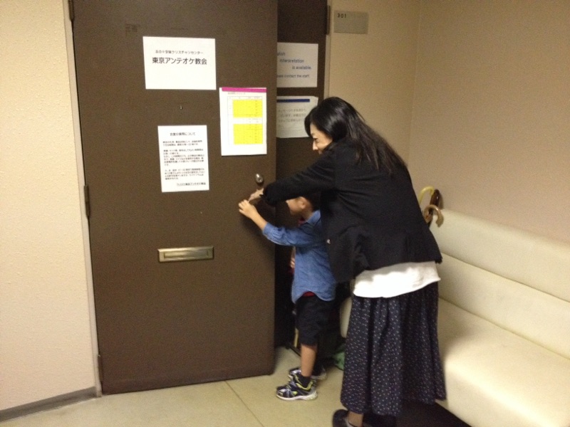 ちょっとプレイバック。親子でそーっと会堂へ。