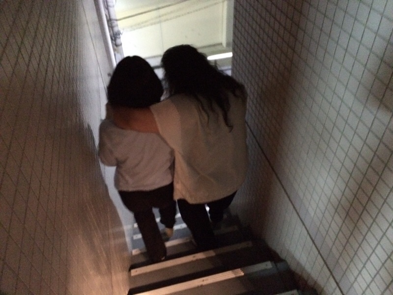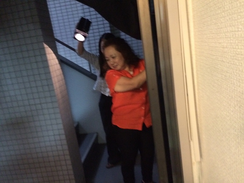 非常階段を開けて明かりを照らします! 足もと気をつけてください〜と言って…