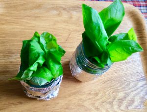 暑い夏が過ぎたので、今年もやります! バジル、増強作戦! 増えますように! まずは、水の中に入れて根を出します。