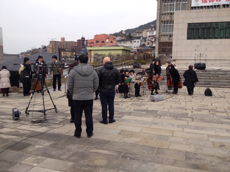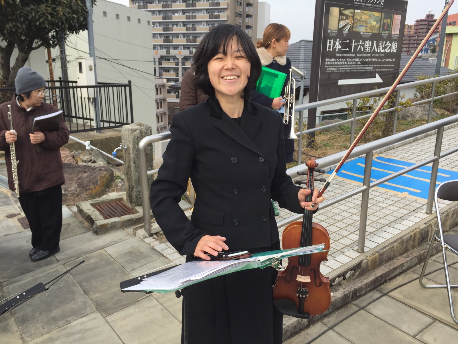 神のしもべ長崎教会の木原さんから、西坂のレリーフ前では、くれぐれも静かに、絶えず祈りと賛美をもって音出し行動をよろしくお願いいたします。とお話をいただきました。