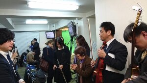 1/31(日)、夜の第七礼拝の 牧師賛美のバックで 演奏する前に、 オ━ケストラメンバ━(オケメン)で集まって、お祈りした時の様子です☆ Megumi