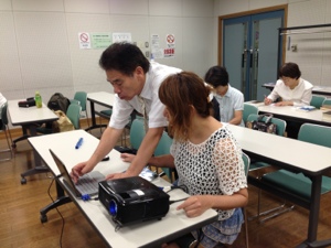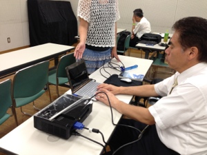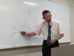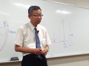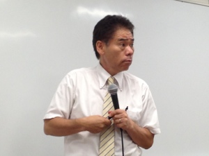 パウロ牧師のカリスマセミナーです! 左腕にキミドリ色の腕時計が!