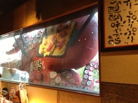 さすが大阪( ̄▽ ̄) 窓にタコが張り付いています
