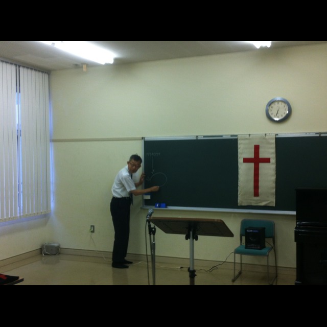神戸アンテオケ教会カリスマ聖会。 預言セミナーです。 会場が元学校なので黒板があります。(((o(*゚▽゚*)o)))