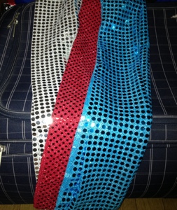 関西合同の賛美隊『スプレンダー』の衣装と言えば、このキラキラスカーフ!左から初代「銀キラ」、二代目「赤キラ」、三代目「青キラ」です(^_−)−☆