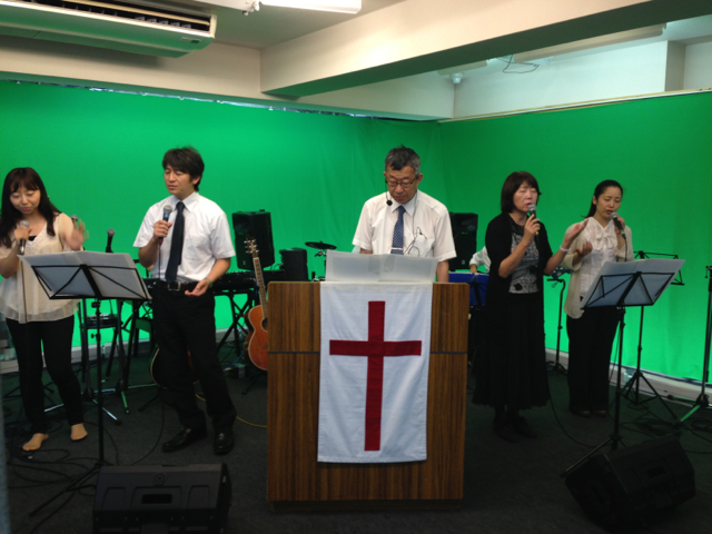 山川牧師が導く賛美チームが会衆賛美をリードします。