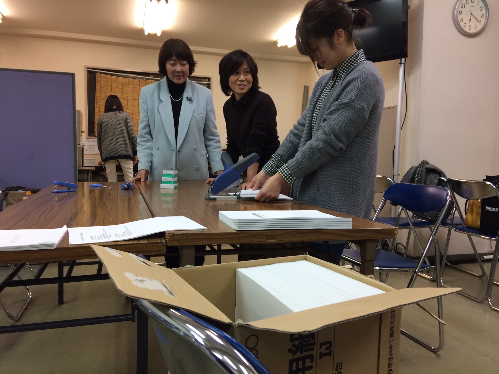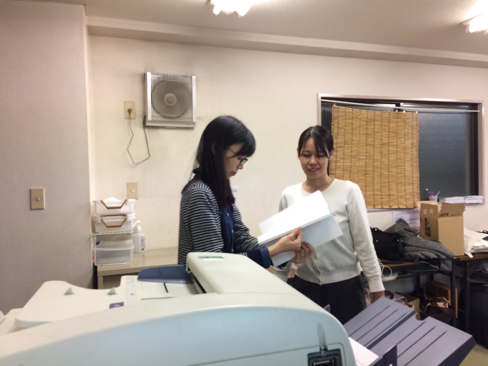 加藤さんが、感謝会資料原稿のプリントアウトを急ピッチでされています。
