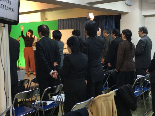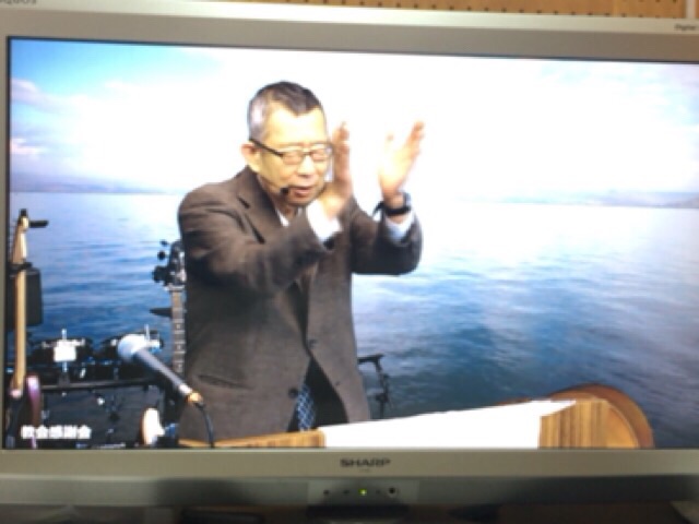 賛美をもって主をたたえます! 賛美リーダーは三本松さんです。