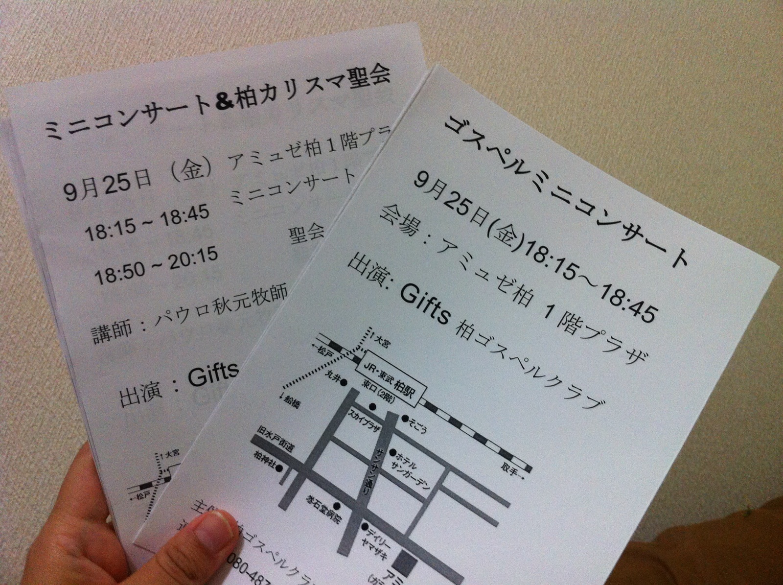 聖会前に、ギフツさんが柏駅で路上ライブをして下さいます。こちらは西口の屋根付きスペースです。