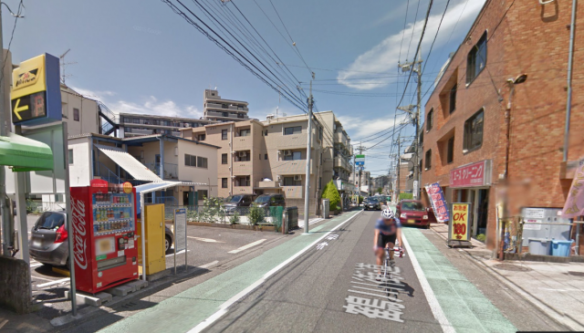 少し歩くと右側に茶色いビルが! ここです。 この道は一方通行なので、車で来られる方は工夫してください。 コイン駐車場があります。