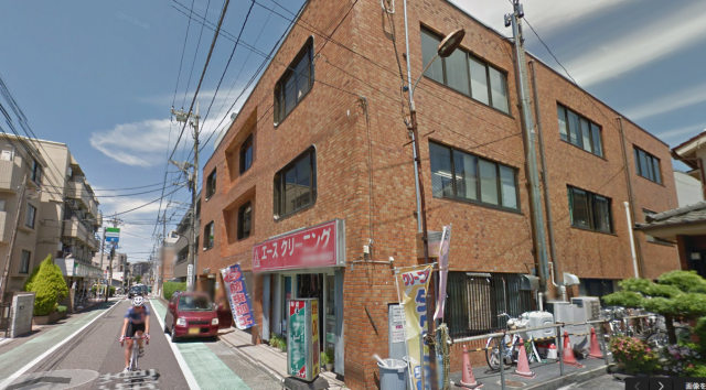 ビルの右側ににクリーニング屋さんがあります。