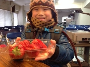 練習前に、 あのうわさのイチゴを頂きました。 ビッグ! 超美味しい! Euqaristias