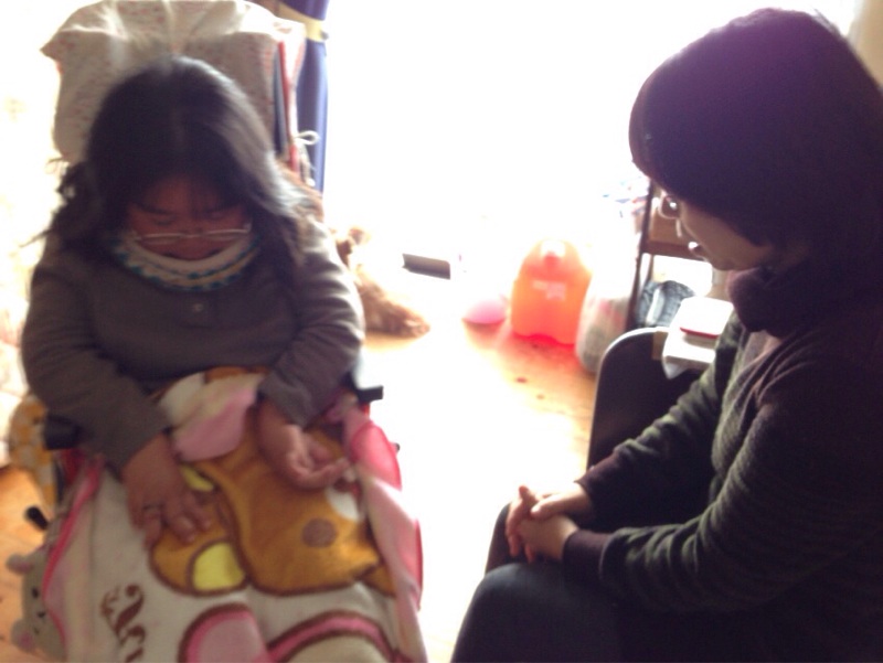 由美ちゃんとお友達がウラノスの賛美を聴いています。